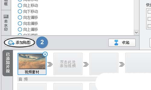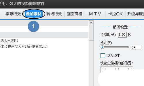 3、接下來我們點擊軟件上方的“疊加素材”,這樣即可在對應的頁面左側看到“添加貼圖”選項;