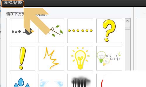 4、在彈出的選擇貼圖對話框,我們選擇自己需要添加的一種類型,點擊以后對話框右側看會有預覽圖標,如圖所示...
