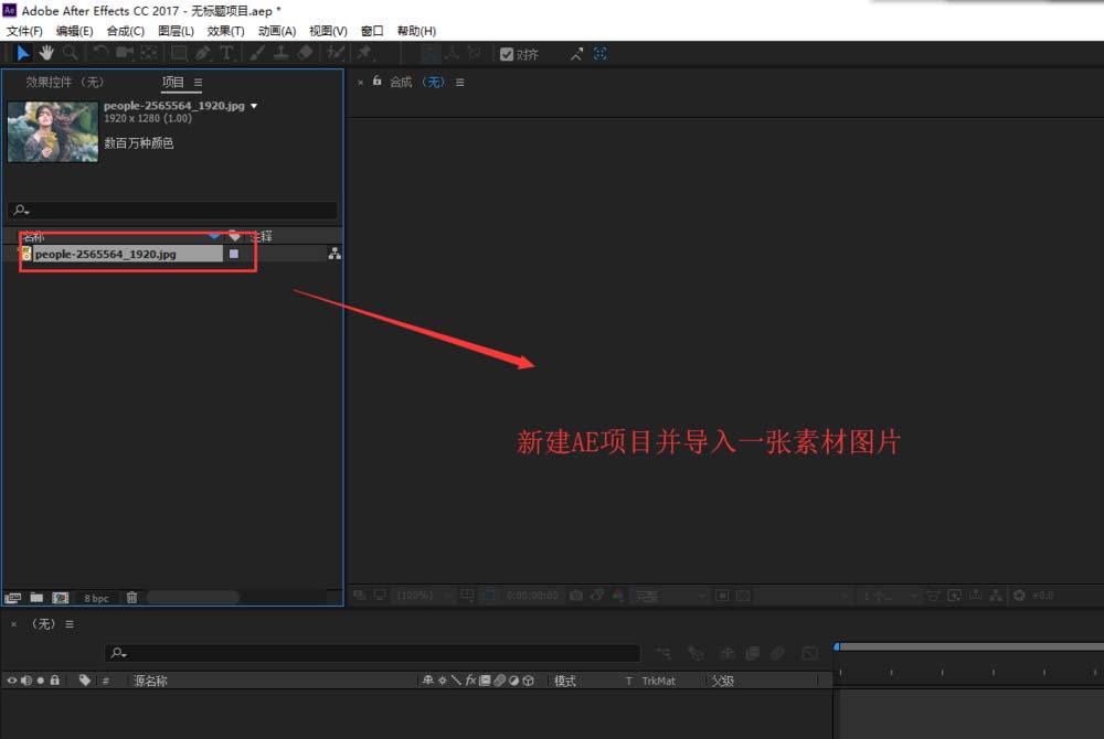 1、先新建一個After Effects項目,在這個After Effects項目中執行導入文件命令,導入一張圖片素材。