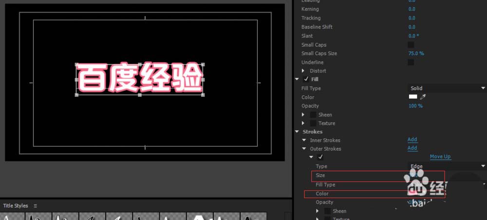 接下來我們給文字添加第一層描邊,按下Outside(外層)add,給他添加描邊,然后更改顏色和描邊大小