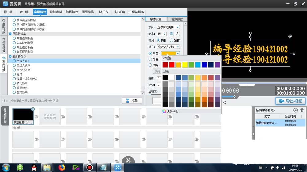 1、首先這個奧運人浪1效果 -是在愛剪輯里面的字幕特效-消失特效-新奇特效類-可以找到