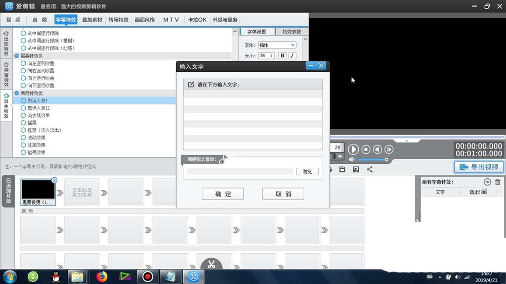 3、輸入文字,確定之后,文字就會出現在視頻預覽區域