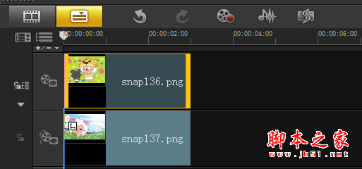 1、首先用戶需要打開進(jìn)入會(huì)聲會(huì)影的界面菜單,進(jìn)兩種圖片素材分別導(dǎo)入視頻軌以及覆疊軌中。