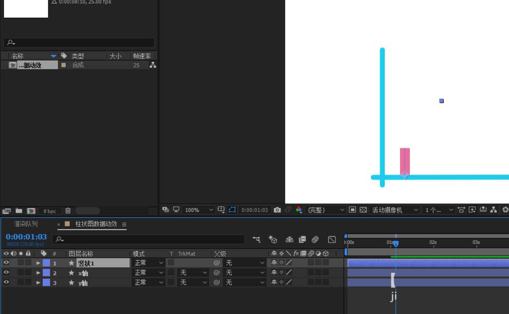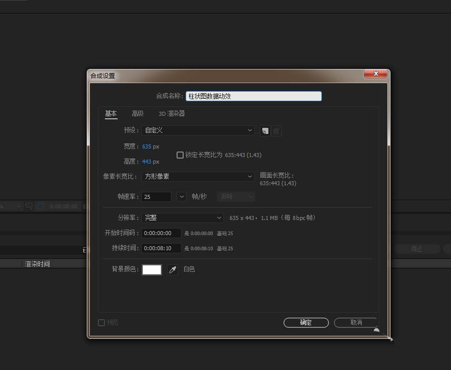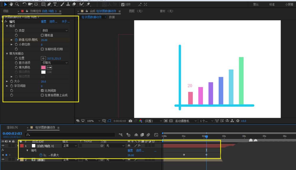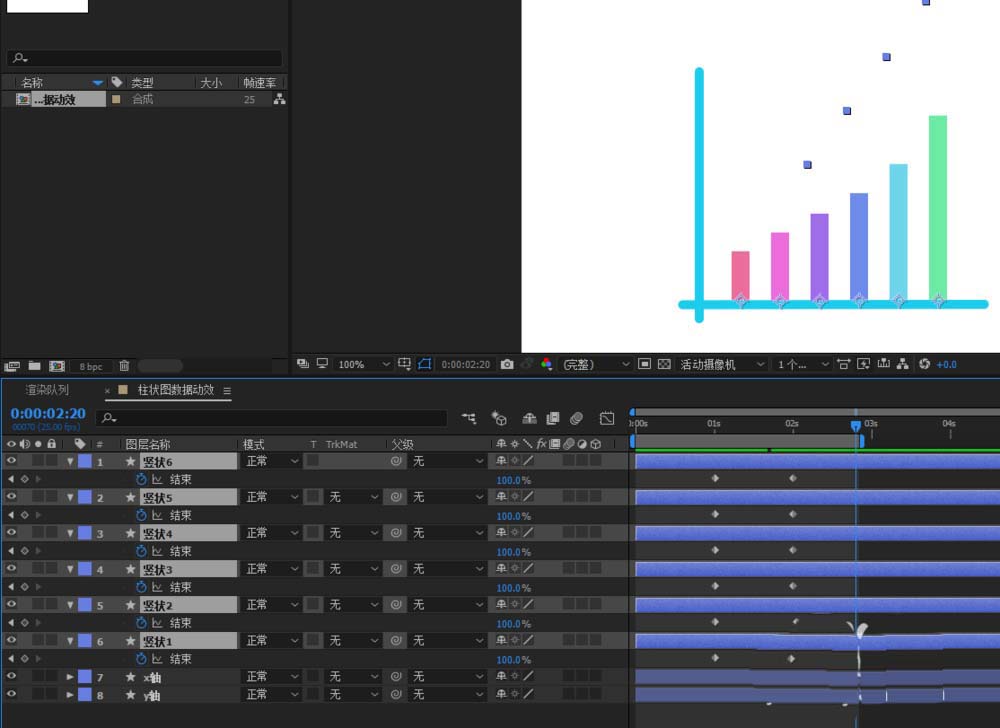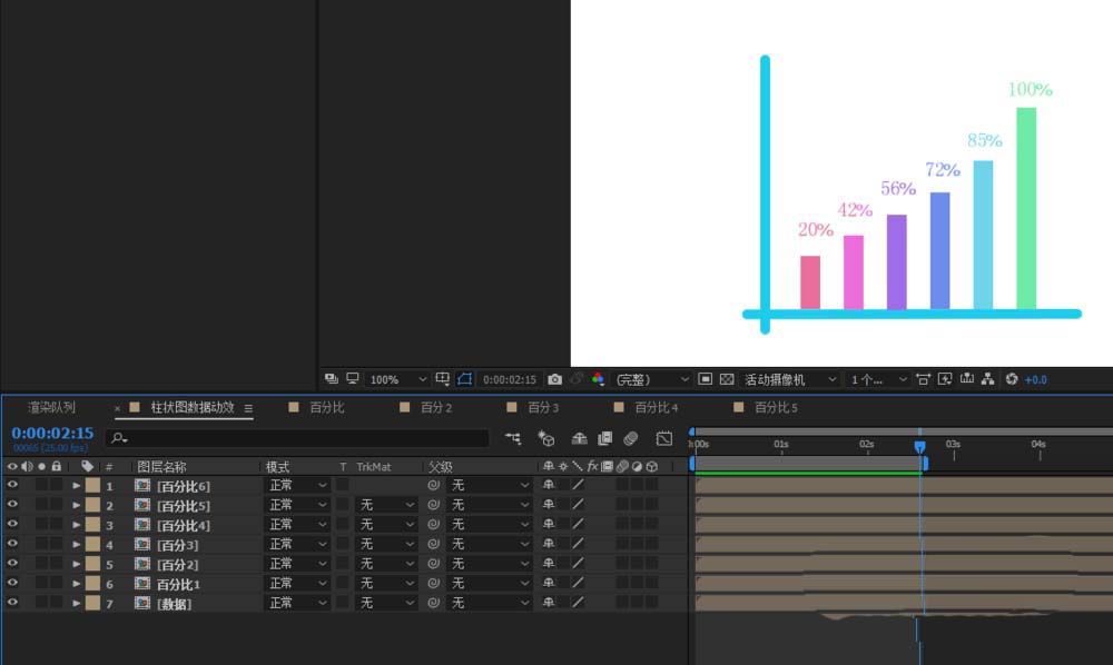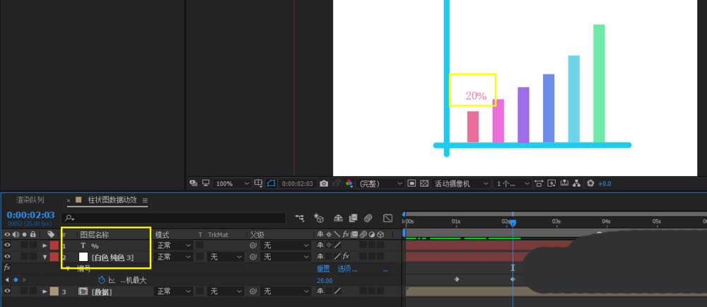 1、打開AE軟件,命名柱狀圖數據動效,調整相應的參數。