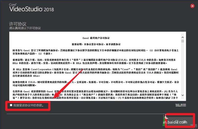 4、點擊我同意協議,之后點擊下一步,不點擊我同意協議,是點擊不了下一步的。