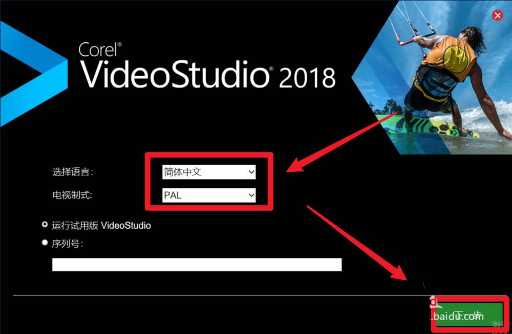3、雙擊安裝程序,之后選擇語言以及電視制式,之后點擊下一步,如圖所示。