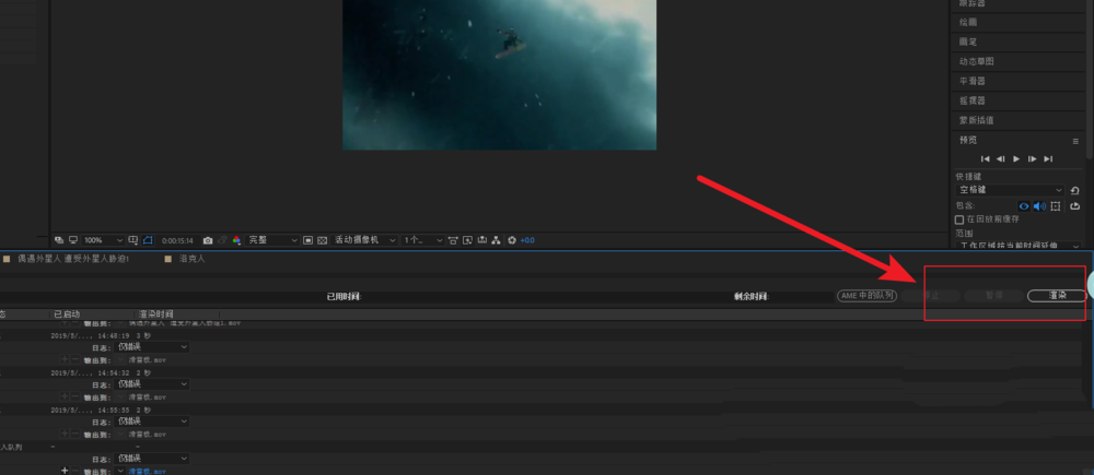 7、點擊渲染,開始渲染,出現輸出的進度條,渲染成功后,就可以在之前設定的保存路徑下找到視頻。
