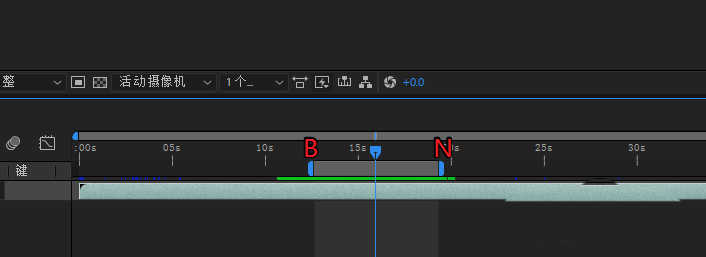 2、然后在時間線上選中視頻軌道,切換到英文輸入狀態,按B和N鍵,設置入點和出點。可以看到時間線上出現了裁剪條。覺得不滿意,還可以拖動裁剪條的兩端調整長度。
