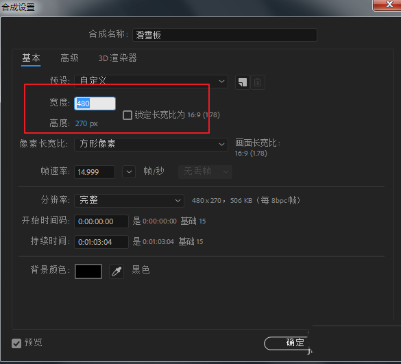 1、打開AE,新建工程,導入素材。在視頻素材上右鍵——基于所選項新建合成,然后在新建的合成上右鍵——合成設置,根據你視頻的播放端選擇合成尺寸,比如在手機端播放,就設置長寬為480*270。