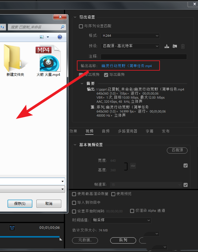 2、點擊輸出名稱旁邊的藍色文字——選擇一個保存路徑。(這里選擇的路徑就是后面批量渲染的路徑。)點擊保存。然后再點擊取消,退出導出設置。