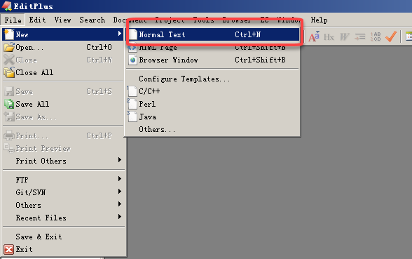 2、打開EditPlus并點擊【File】--》【New】--》【Normal Text選項新建一個文本文件。