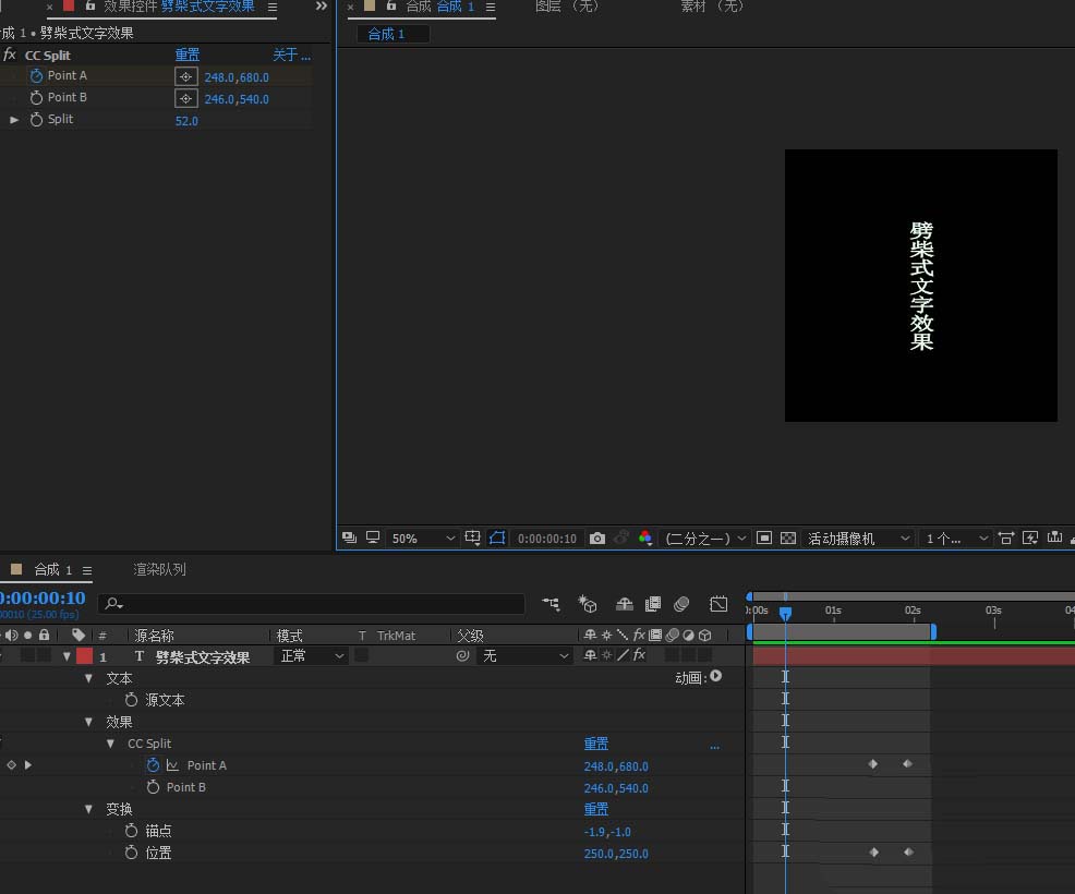 3、選中文本圖層,添加CC Split效果;效果-扭曲-CC Split;