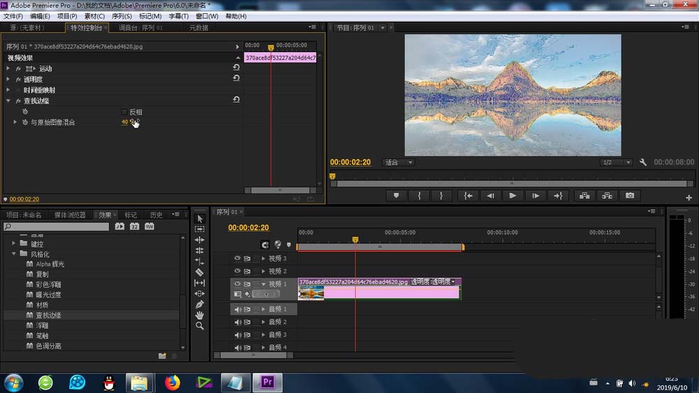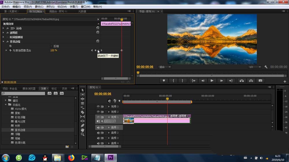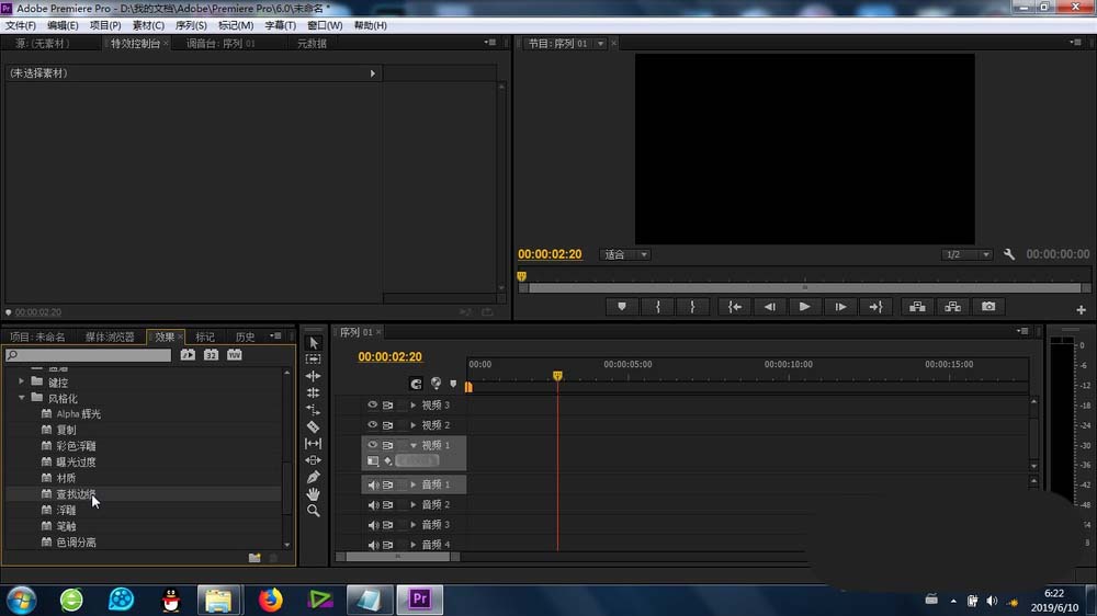 1、要做效果,一定要知道這個“查找邊緣”功能的位置:特效-視頻特效-風格化