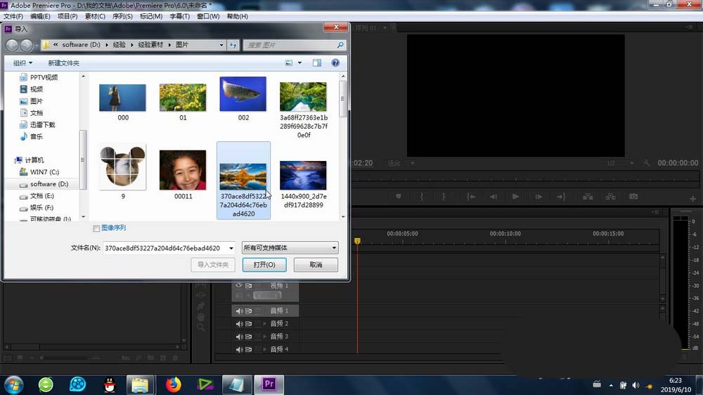 2、在premiere的素材庫中,導入圖片或者視頻素材