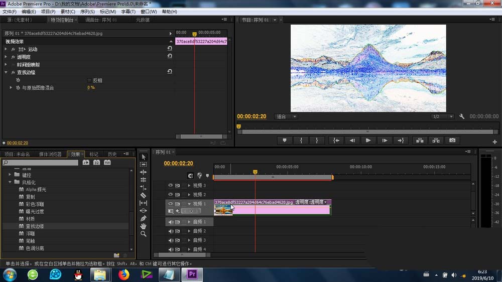 4、再有就是找到“查找邊緣”功能,將其添加到素材上,這樣最基本的查找邊緣效果就產生了