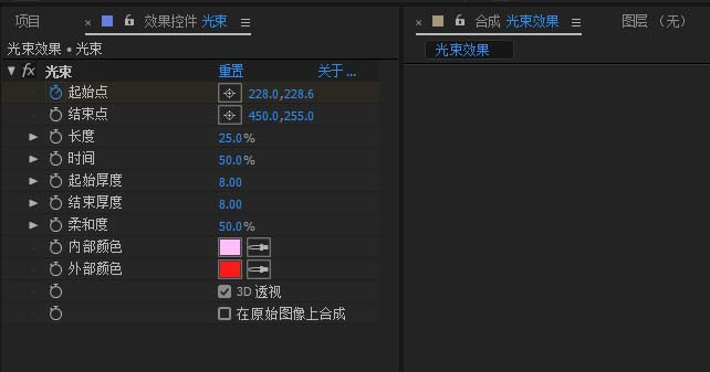 5、起始點和結束點:主要用于調節我們光線所在的位置以及方向;