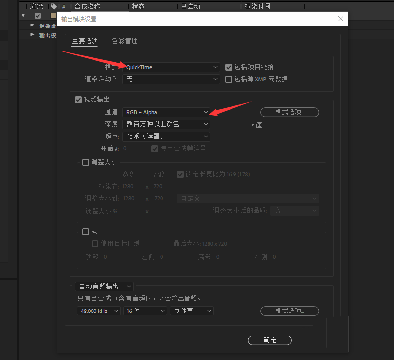 6、ctrl+m 導出 ,格式使用quicktime ,rgb+alpha。