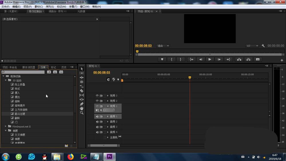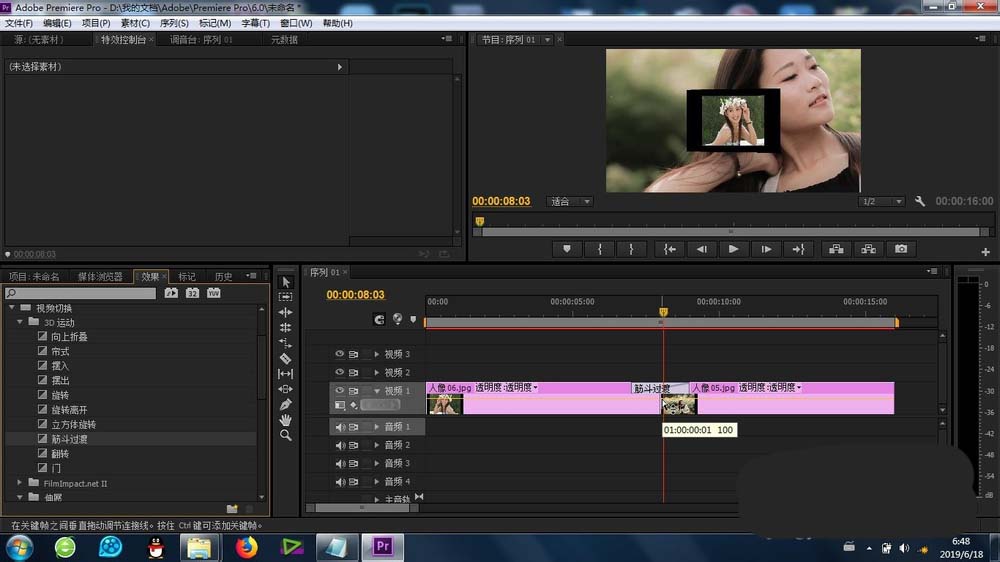 1、首先就是這個“筋斗過渡”的功能是在-特效-視頻切換-3D運動-里面