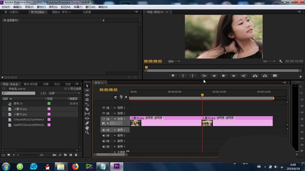 3、將素材導入時間線上之后,根據實際的情況來縮放時間線,達到最佳的顯示比例