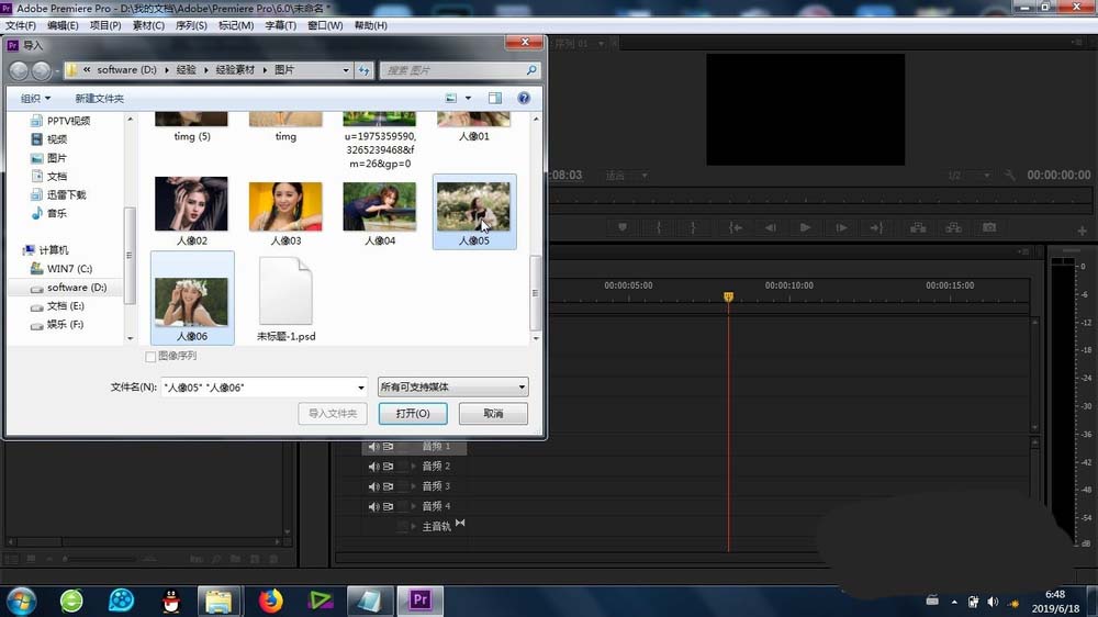 2、再有就是將素材進行導入素材庫(圖片或者視頻都可以)