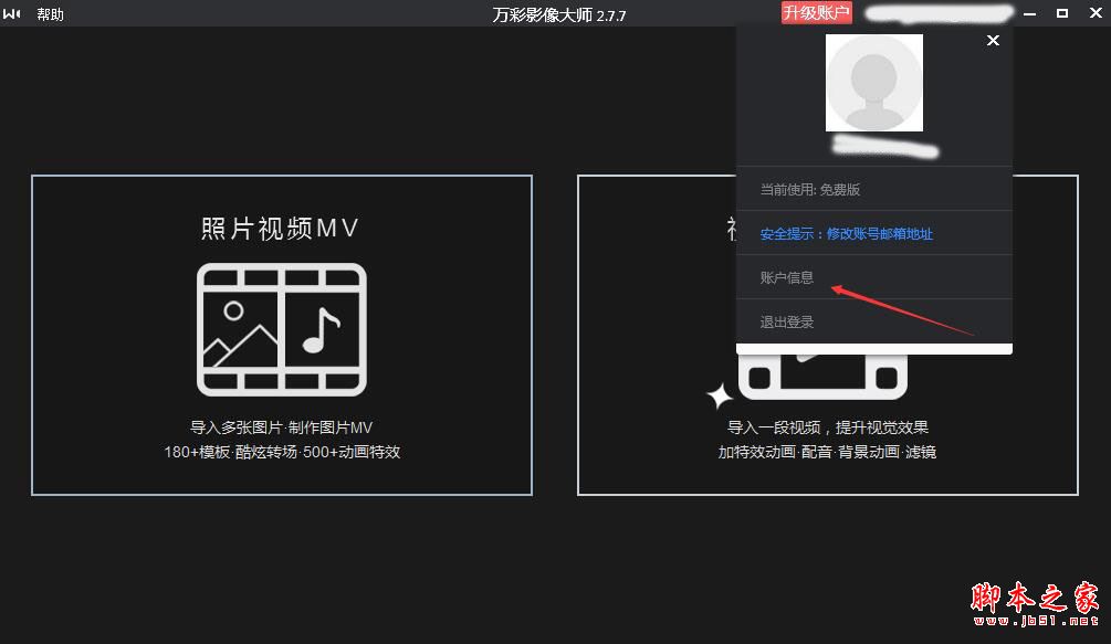 1.下載完成后打開軟件,點擊右上角登陸你的賬號,選擇賬戶信息