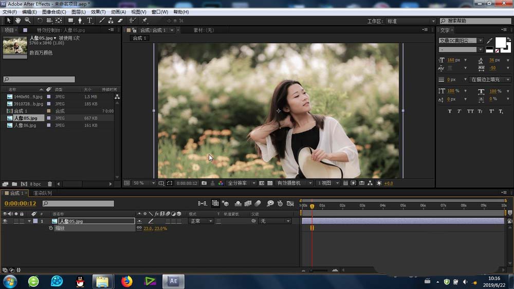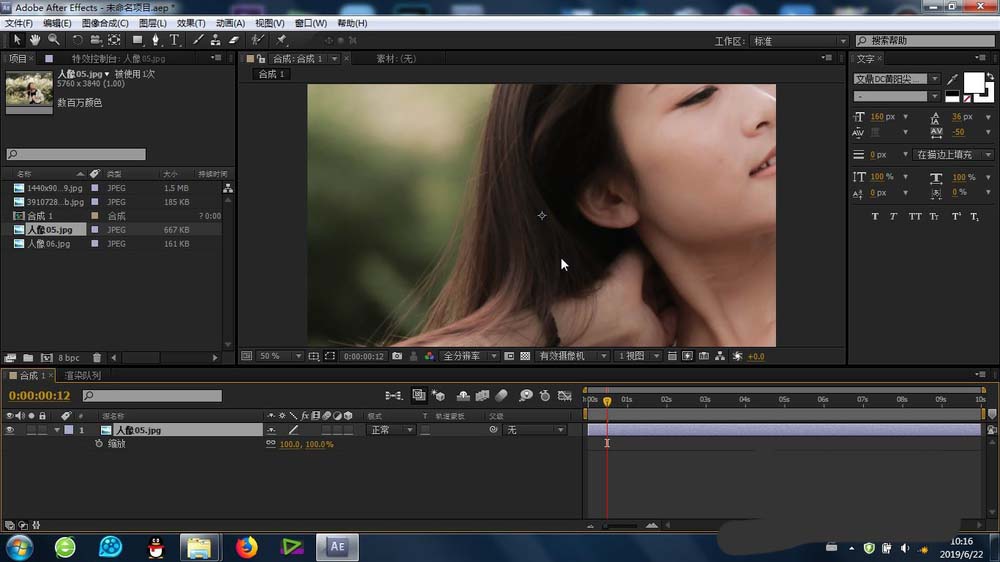 2、根據素材的大小,適當縮放,以便于最后吹泡泡效果的預覽