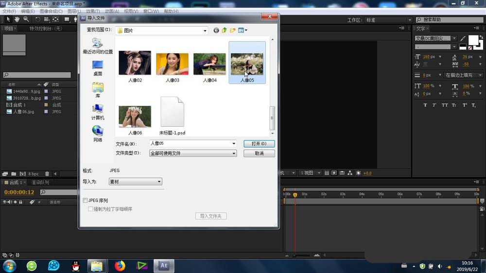 1、最首要的步驟就是圖片素材的素材庫導入,導進去之后再導入合成里面的時間線上