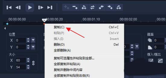 8、我們點(diǎn)擊粘貼就行了。我們就成功的在結(jié)束幀的位置進(jìn)行了復(fù)制。在結(jié)束幀的位置上,我們也就能夠看見X軸為60,Y軸為54了。就這樣,我們就復(fù)制了關(guān)鍵幀。