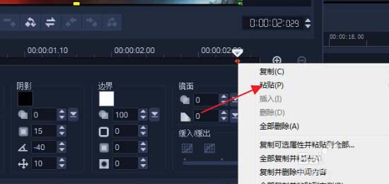7、然后,我們用鼠標(biāo)右鍵點(diǎn)擊這個(gè)結(jié)束位置的關(guān)鍵幀。這個(gè)時(shí)候,我們就看見有個(gè)粘貼功能。