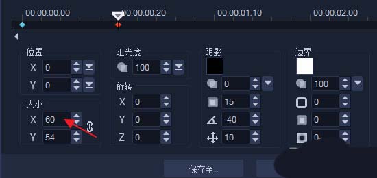 4、接下來,我們隨便創(chuàng)建一個(gè)關(guān)鍵幀。我們將這個(gè)關(guān)鍵幀的X軸修改為60,Y軸為54。