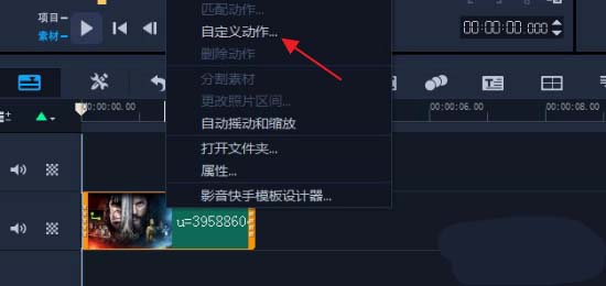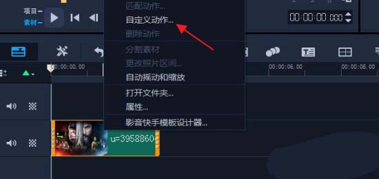 2、接下來,我們用鼠標(biāo)右鍵點(diǎn)擊這個(gè)視頻,然后點(diǎn)擊出現(xiàn)的自定義動(dòng)作。