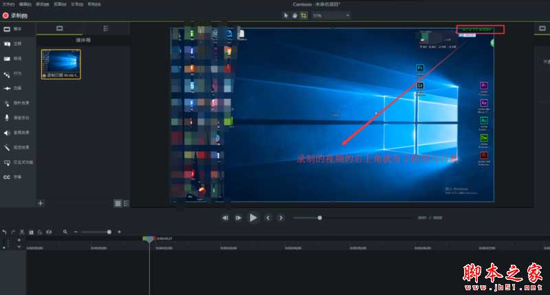 設置完成,點擊【rec】標志,開始錄制屏幕,錄屏結束,在Camtasia 9中打開視頻,我們可以看到視頻畫面右上角出現了時間與日期。