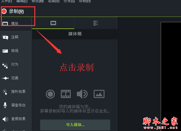 新建一個項目,然后進入軟件主界面,點擊【錄制】命令,