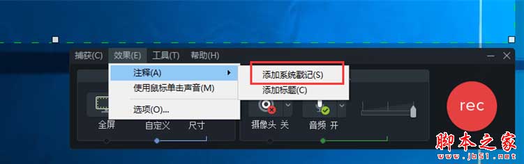 再次點擊【效果】選項,選擇【注釋】,勾選【添加系統戳記】,