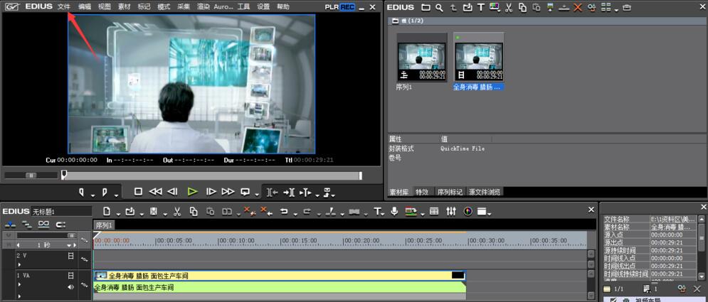 如圖,視頻剪輯完成,點擊軟件界面上方的【文件】菜單,