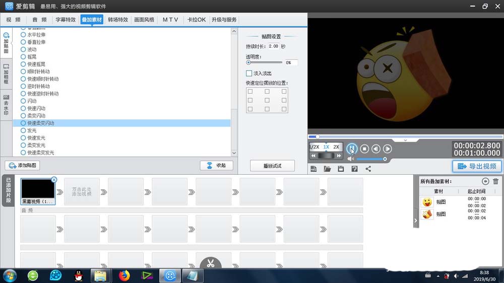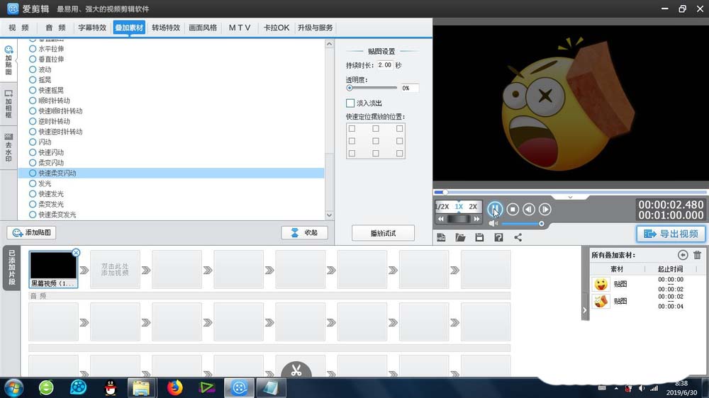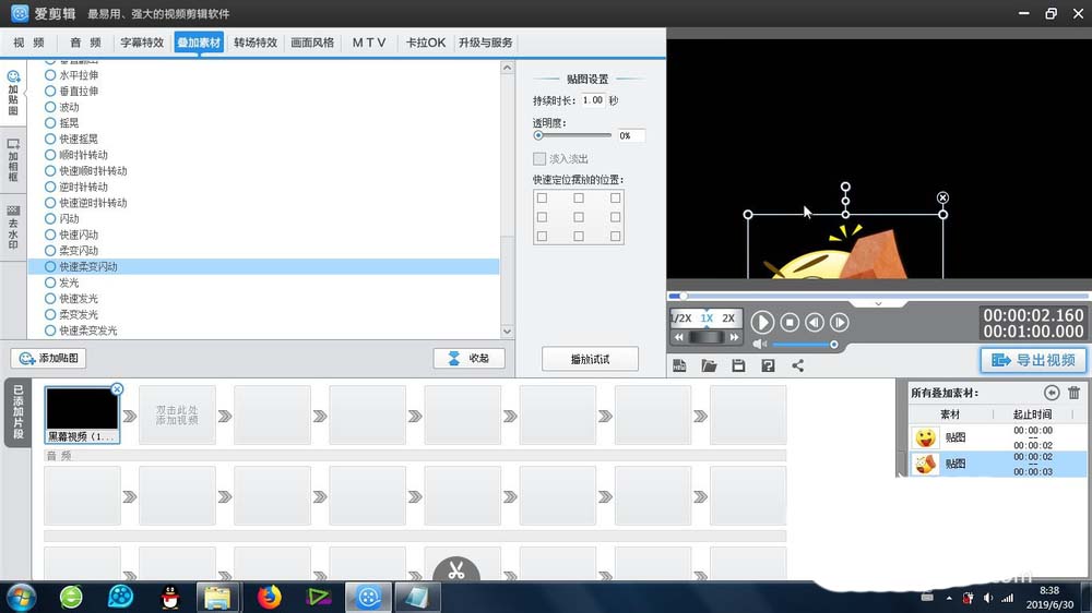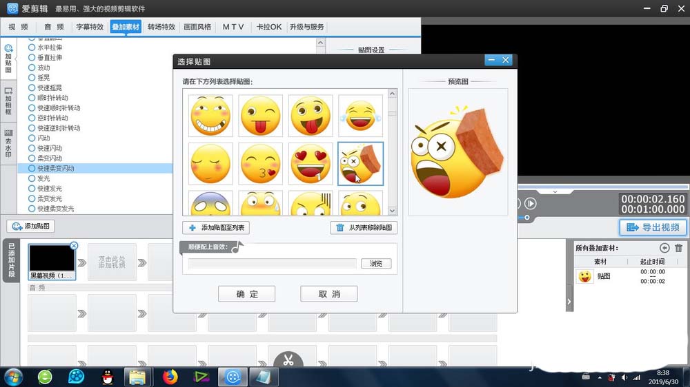 3、選擇合適的貼圖,確定之后,貼圖就會出現在視頻預覽區域