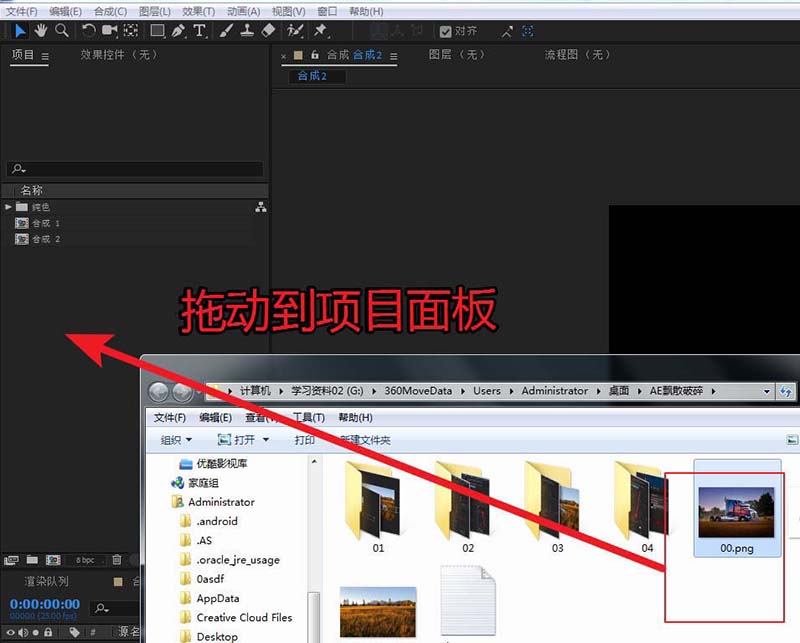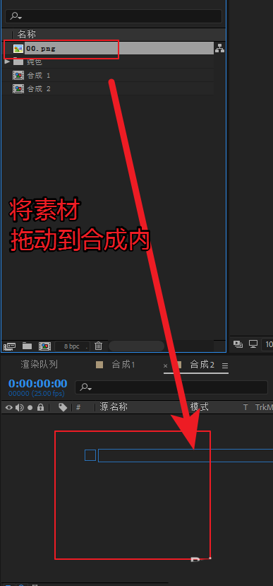 4、再將圖片從項目面板拖動到剛才新建的合成中。