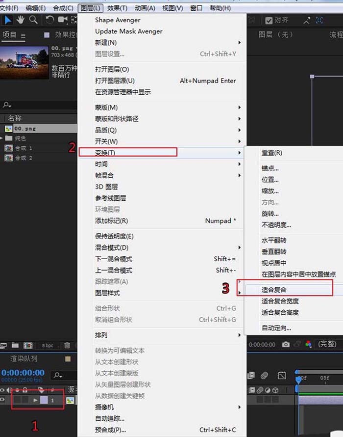 5、可以看到圖片與合成大小不一致,選中圖片,然后在菜單里選擇如下選項: