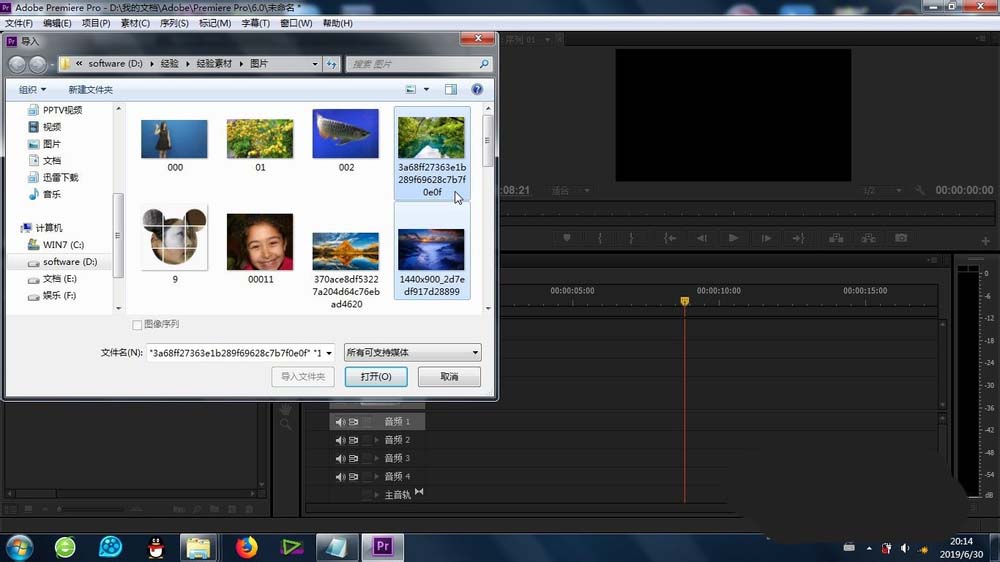 2、在premiere的素材庫(kù)中,導(dǎo)入圖片或者視頻素材