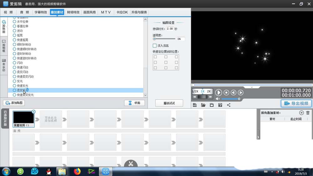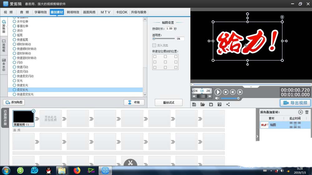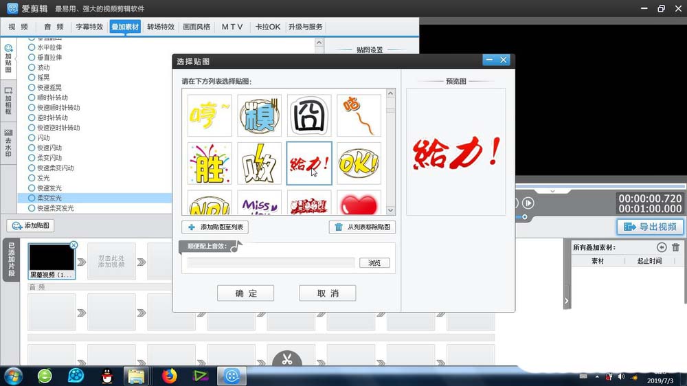 3、選擇合適的貼圖,確定之后,貼圖就會出現(xiàn)在視頻預(yù)覽區(qū)域