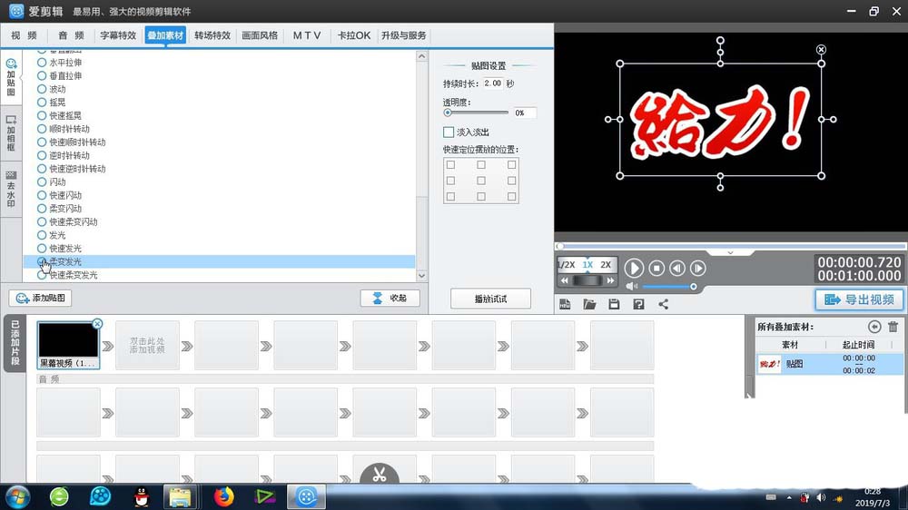 愛剪輯怎么給素材添加發(fā)光消失效果?