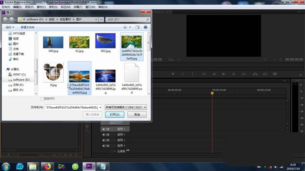 2、再有就是將速到進行導入素材庫(圖片或者視頻都可以)