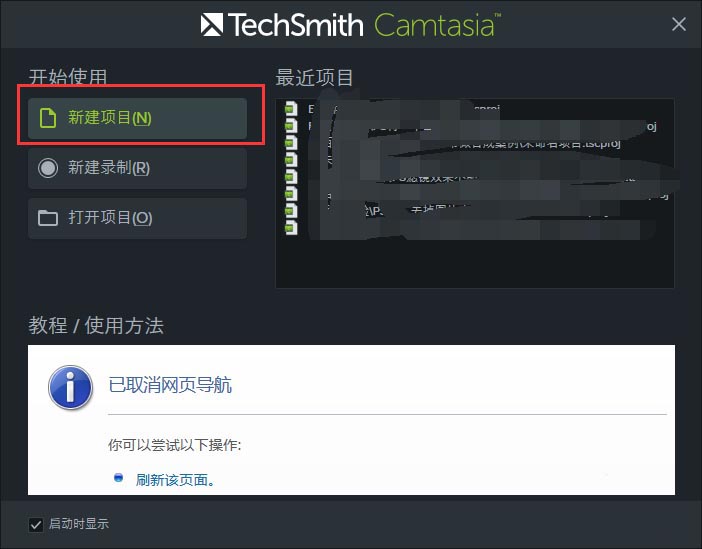 1、先安裝好Camtasia 9軟件,然后雙擊Camtasia 9在開始歡迎界面中選擇“新建項目”。