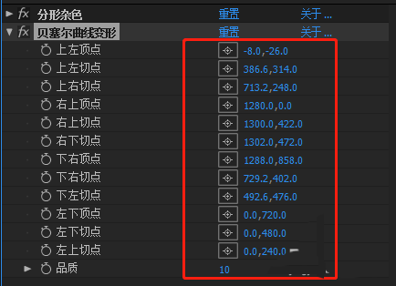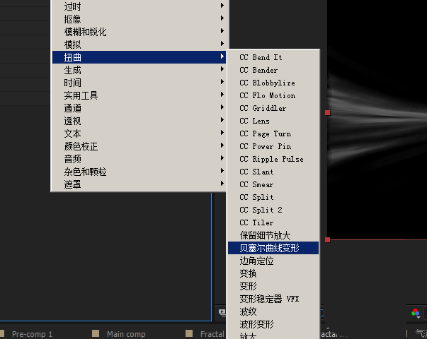 1、然后添加效果 貝塞爾曲線變形,設置參數如圖