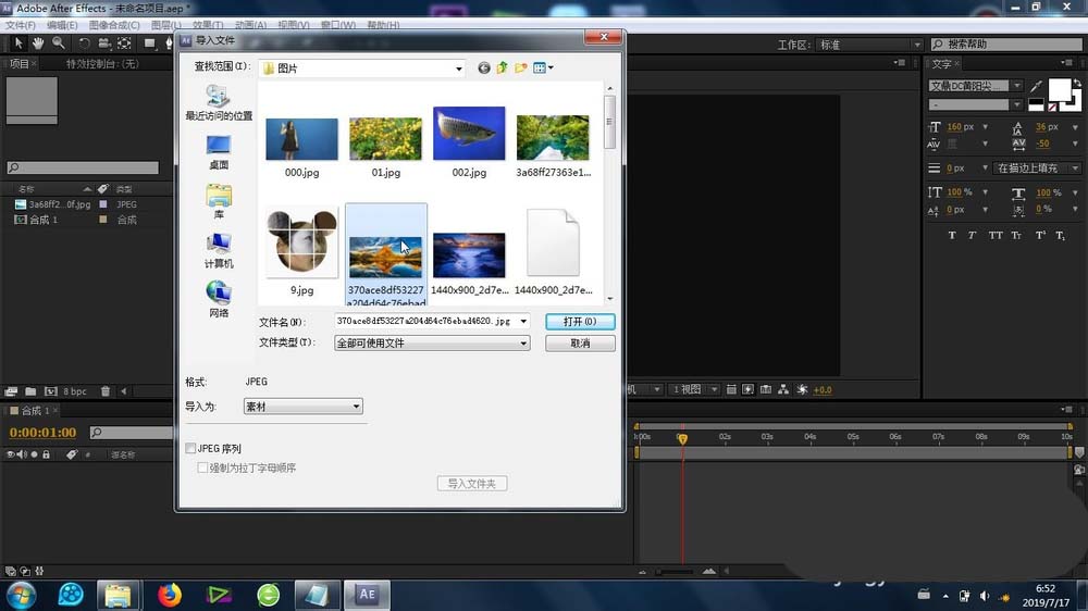 1、首先就是素材的導(dǎo)入,這個導(dǎo)入的方法很簡單,不再贅述,將素材庫的素材拉至合成里面的時間線上