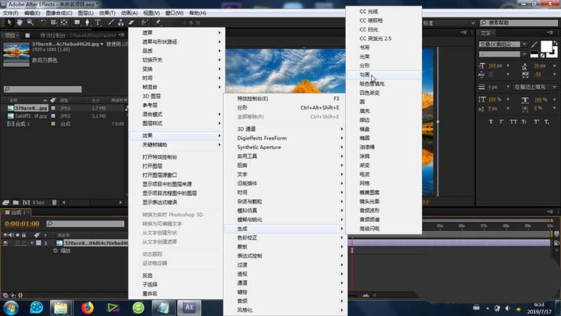4、這個效果還可以這樣添加:上方的效果-生成-勾畫