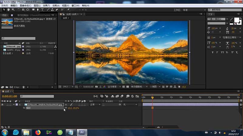 2、根據(jù)素材的大小,適當縮放,以便于最后效果的預(yù)覽
