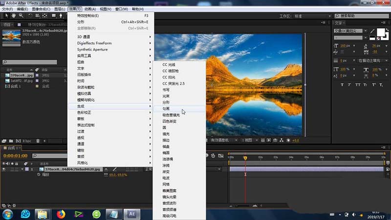 3、選中素材,右鍵選擇添加的是:效果-生成-勾畫