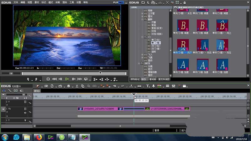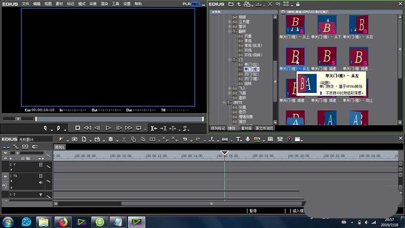 1、接下來就是單門推的位置是在EDIUS的特效里面,找到里面的轉場-GPU-門-里面,里面多種類似的效果讓我們挑選。