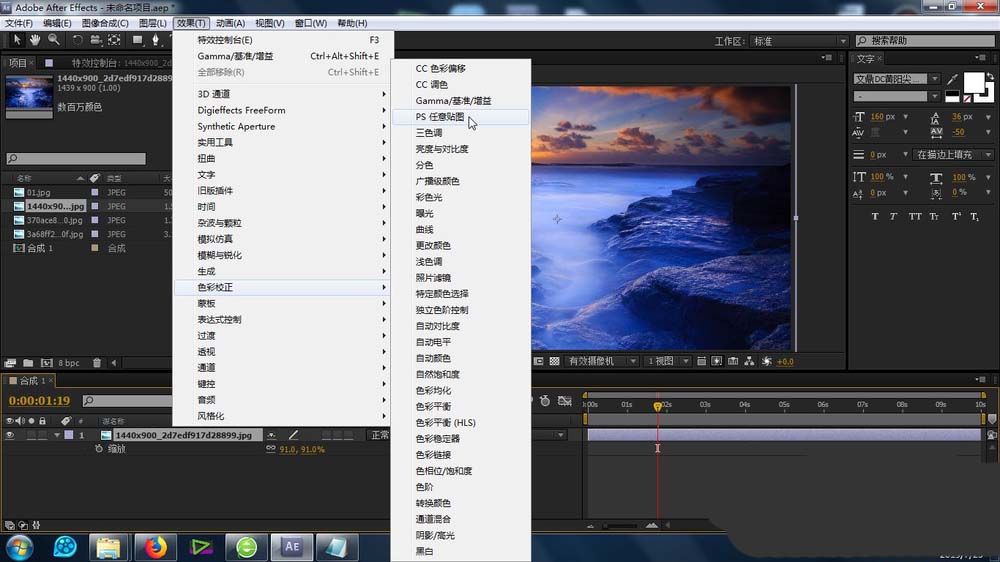 4、這個任意貼圖功能效果還可以這樣添加:上方的:效果-色彩校正-任意貼圖功能